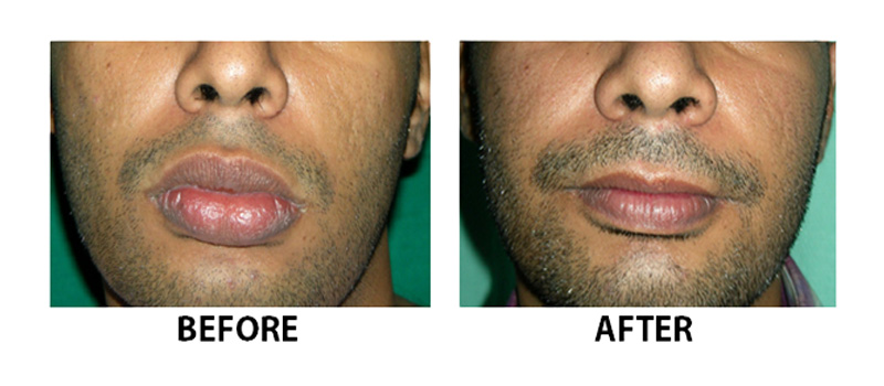 Bleeding is minimal and controlled with electrocautery, lip is closed by absorbable stitches so no need of stich removal. After surgery dressing is applied and patient is allowed to go home within half an hour and after surgery pain killer and antibiotic is advised.